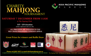 - Charity Mahjong Tournament in aid of Philippines Typhoon Haiyan - The Epping Club on 7 December 2013 @ 11 am