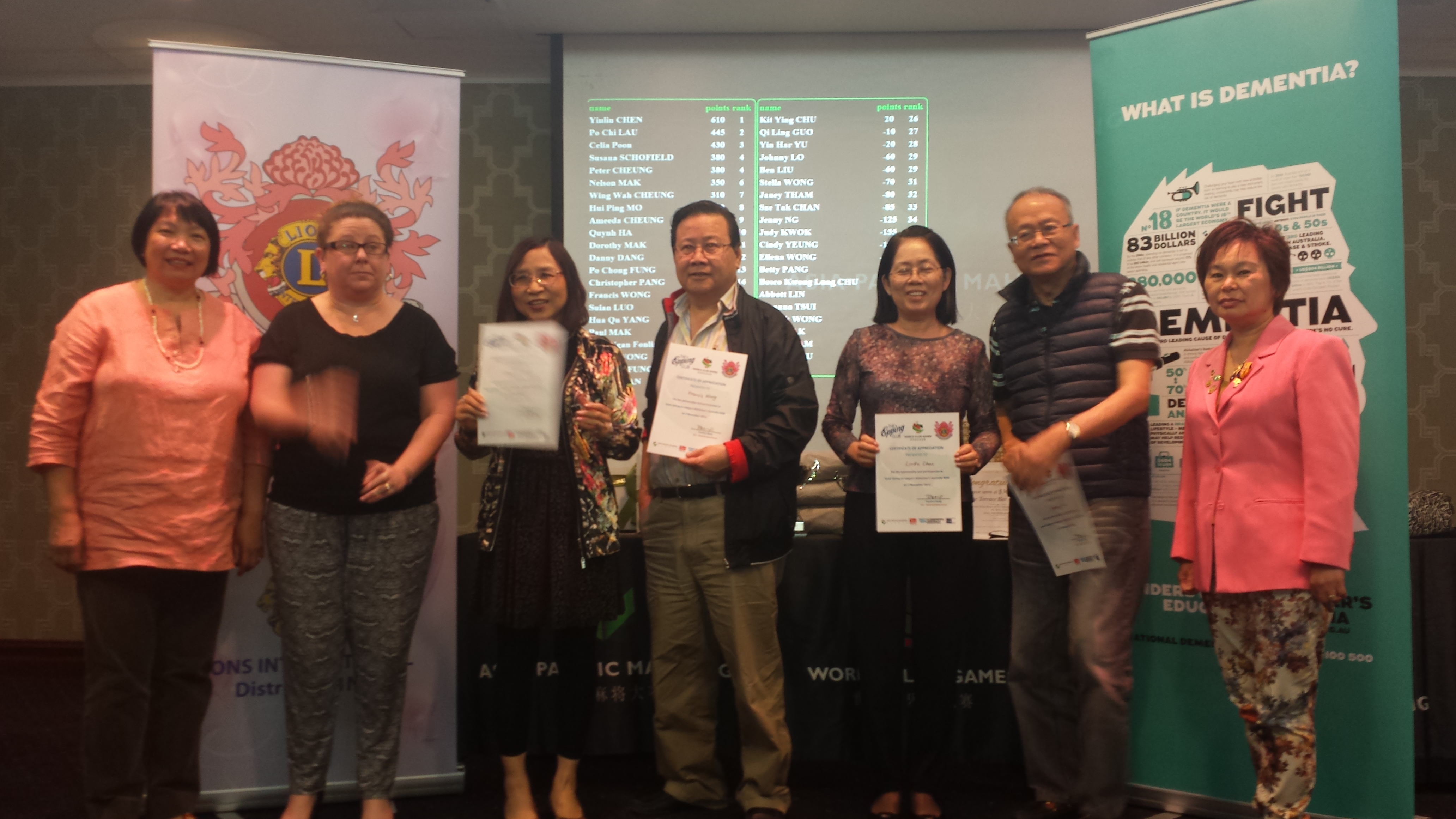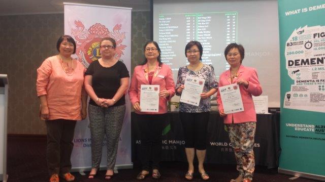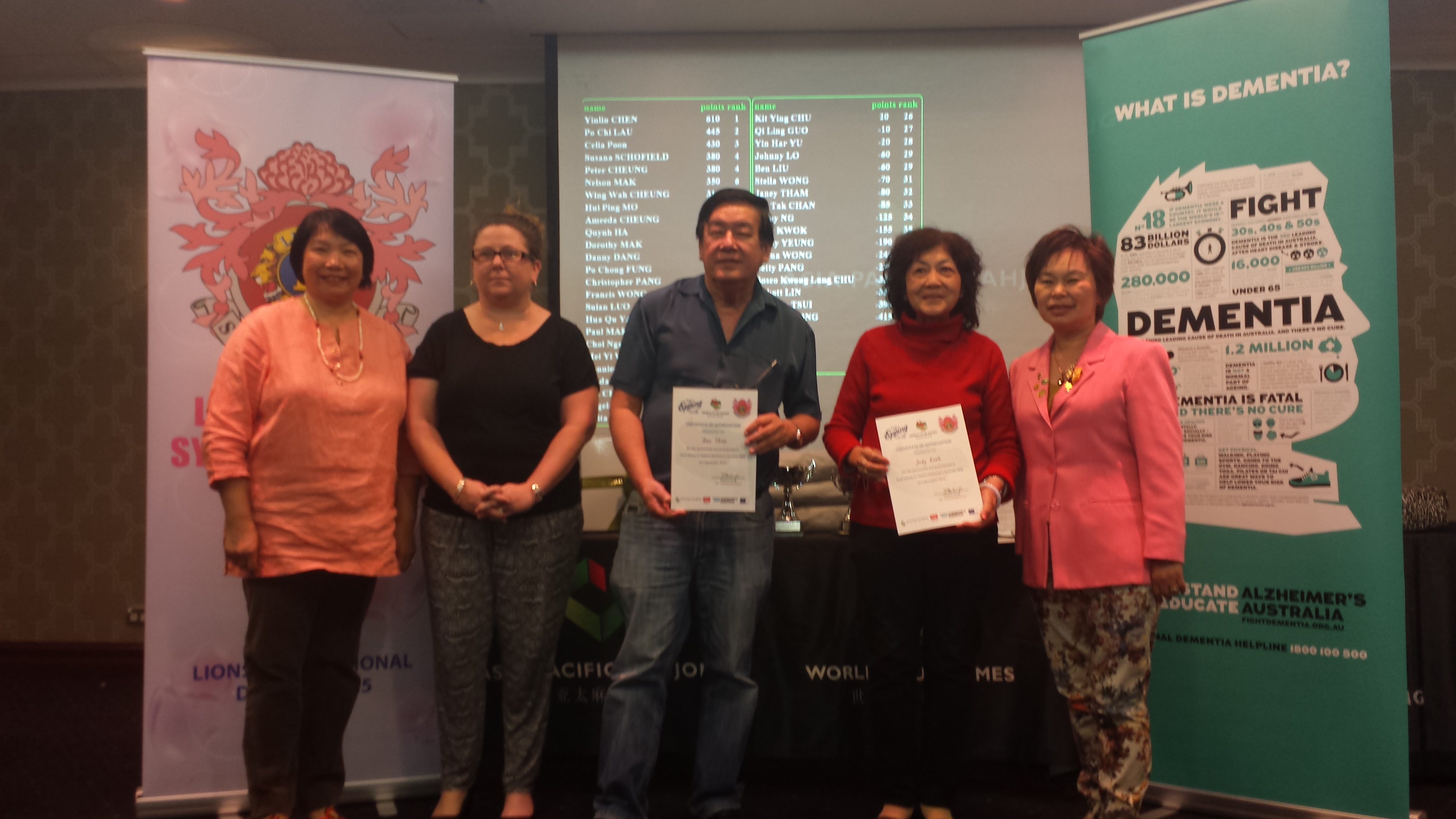 We would like to thank the Epping Club for their tremendous support with their generous supply of sandwiches, fresh fruits, juices and beverages as well as hampers and food vouchers as prizes. We would also like to thank the Lions Club Sydney Waratah, the Pink Ladies, for coming to support this cause and also contributing to the various prizes. Once again, Trophyland has been very generous with their donation of Trophies for the tournament. We thank you very much for these beautiful trophies to remind the winners of their participation in this great charity mahjong tournament. Last but not least, we would like to thank 2AC Chinese Radio Station for broadcasting the Charity tournament and bringing awareness to their listeners about Alzheimerˇ¦s Australia for the past month. Most of all we would like to thank all mahjong players who have perticipated in the charity tournament