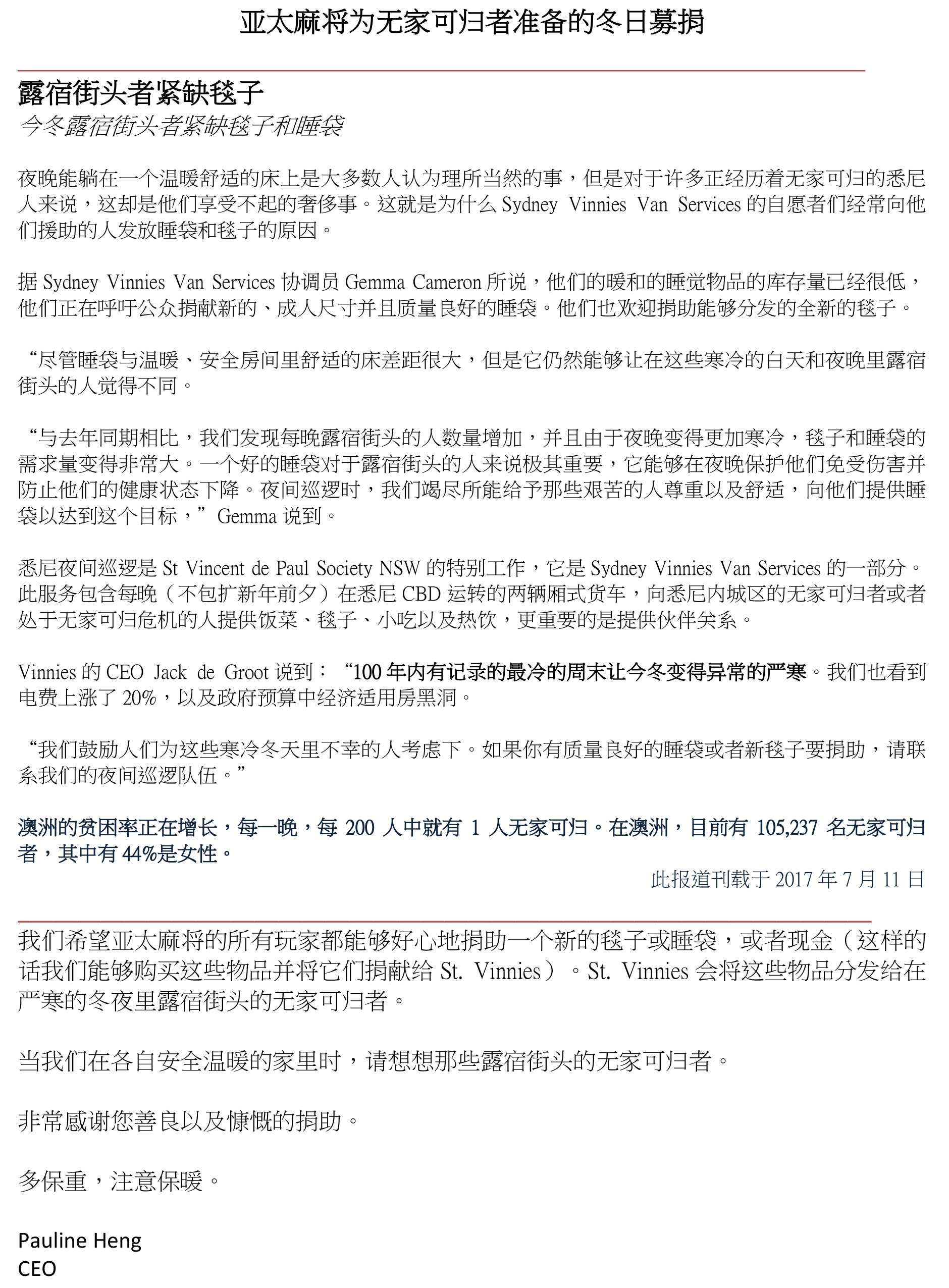 在2013年12月7日,我们在EPPING俱乐部举行的慈善比赛中筹集到了$3000澳币的善款,这些钱将会送给the Red Cross Philippines Typhoon Appeal。